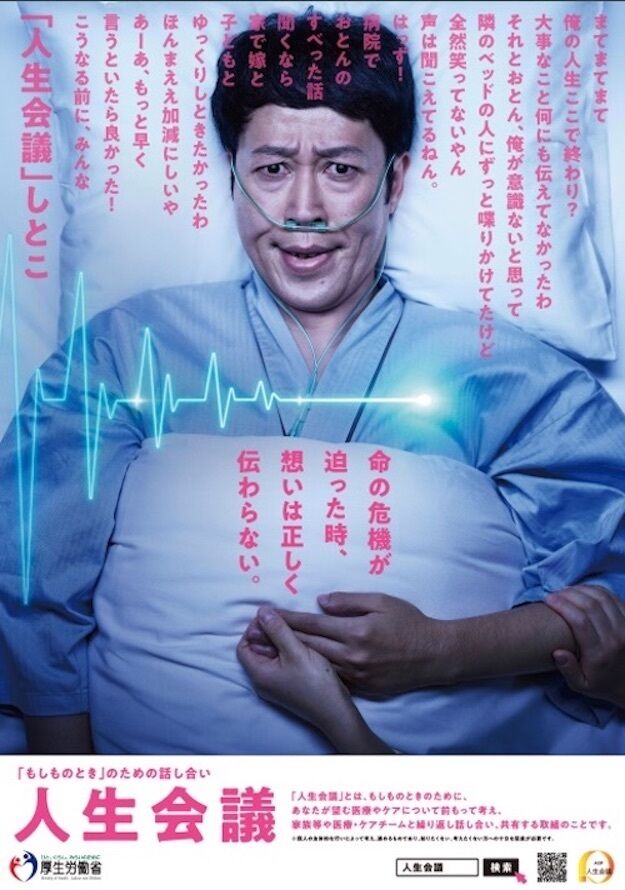 @yui_dochibi色んな意見があるけど、私はこのポスター賛成。生死をさまよう時って急に来るし、短期間のうちに患者家族に選択を迫られる。考えるきっかけになればいいな。患者にも家族にも配慮がない」「誤解を招く」 厚労省の「人生会議」PRポスターに患… https://t.co/AQNrmovgNZ
