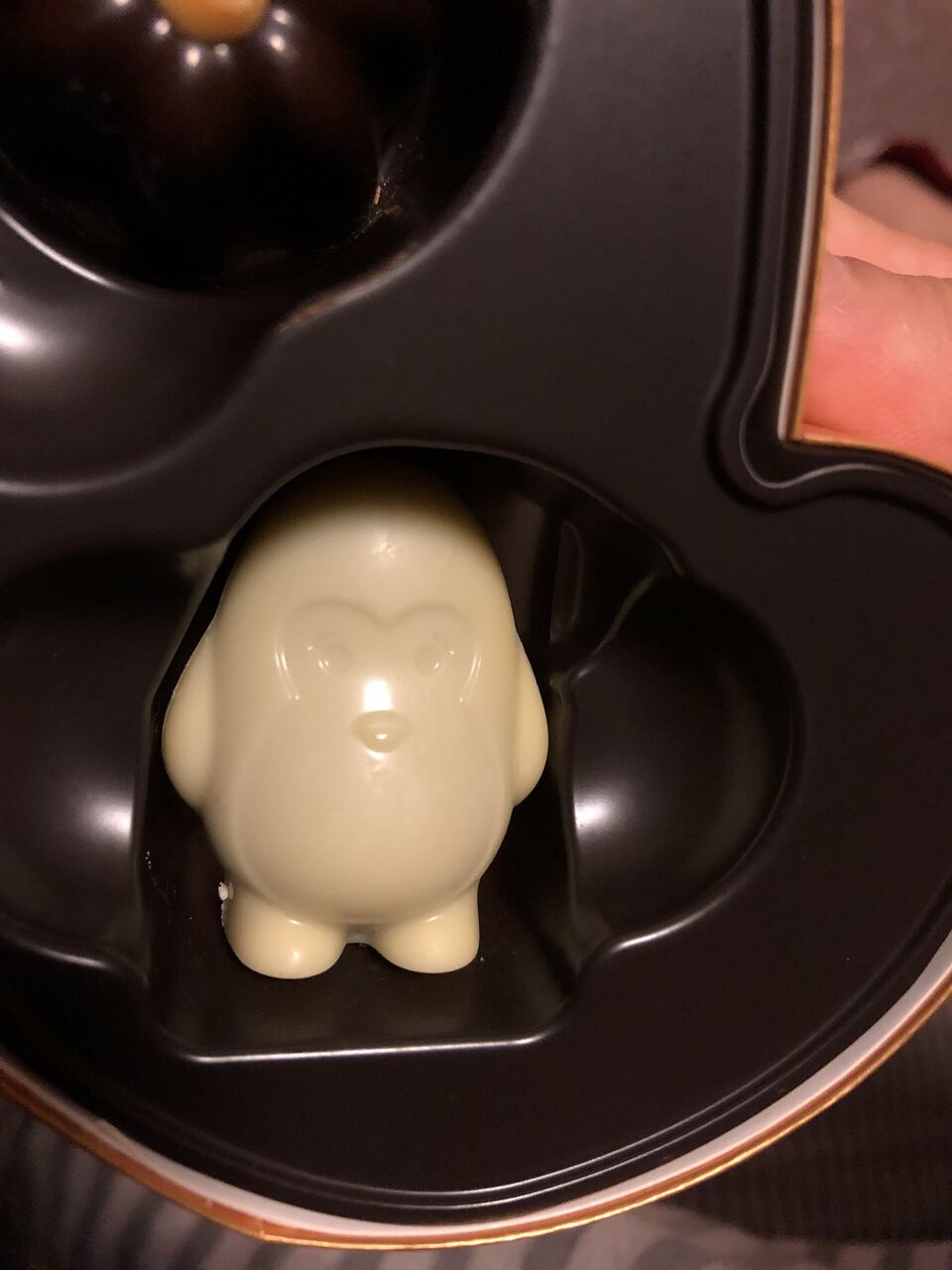 @Yoshihir02この前Twitterで話題になってたチョコレート、我が家にも来たけど確かにゴリラなのかペンギンなのか微妙なデザインだな……