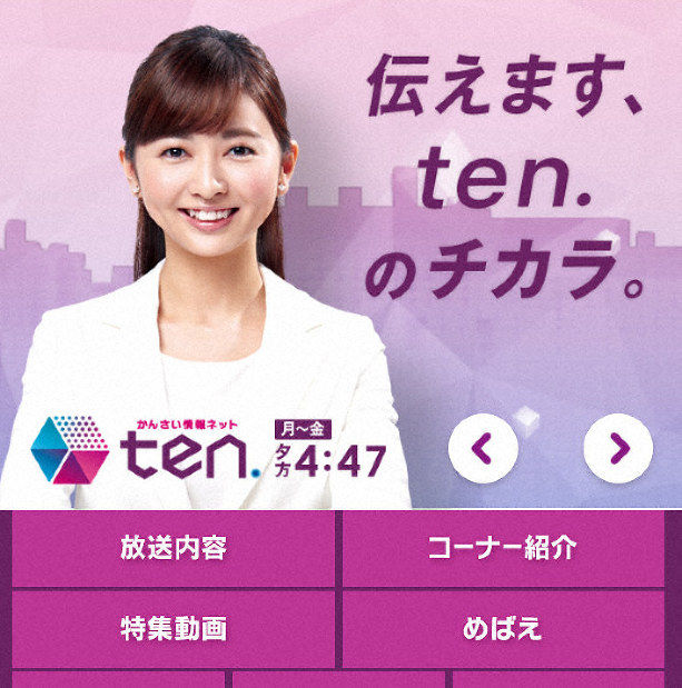 問題となった読売テレビのニュース番組「かんさい情報ネットten.」の番組情報ページ
